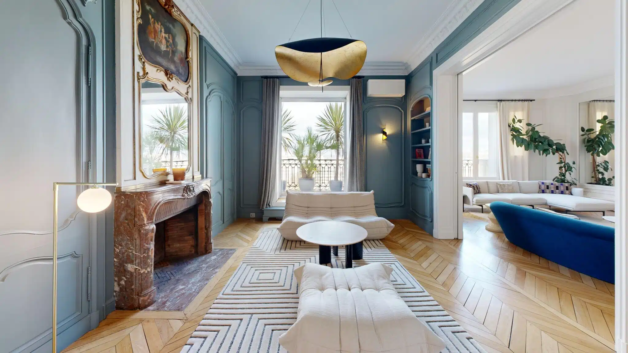 Cette résidence contemporaine bénéficie d’un design ouvert, intégrant harmonieusement les espaces salon, salle à manger et cuisine. Cette visite virtuelle de maison offre une vue sur la cuisine élégante comprend un grand îlot avec des comptoirs sombres et des armoires blanches. Les fenêtres du sol au plafond inondent l’espace de lumière naturelle et offrent une vue luxuriante sur l’extérieur. Les chambres présentent des styles variés, des murs d’accent vibrants à la décoration minimaliste. Un bureau à domicile bien équipé et une salle de bain avec un carrelage complexe ajoutent de la fonctionnalité. L’intérieur est caractérisé par une palette de couleurs neutres, des éléments en bois et des luminaires modernes, créant une atmosphère harmonieuse et accueillante.